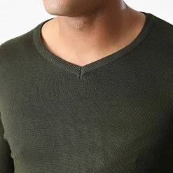 Offres 😍 Pull Col V LD-69007 Vert Foncé de KZR 🥰