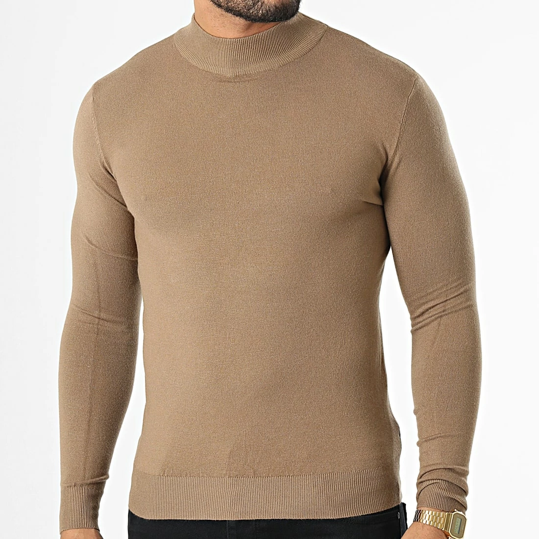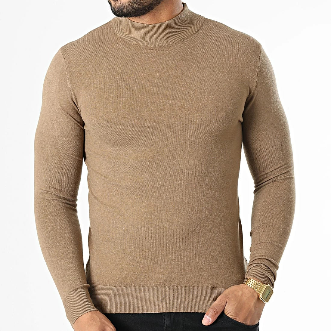 Le moins cher 🎁 Pull Col Cheminée LD-690017 Camel de KZR ❤️