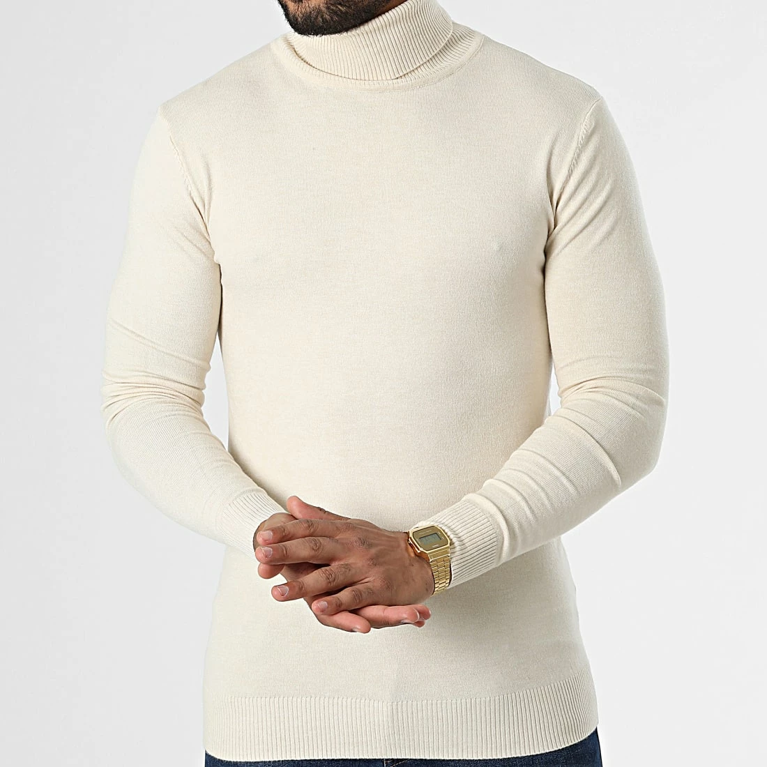 Coupon ⭐ Pull Col Roulé LD-690018 Beige de KZR 🔥