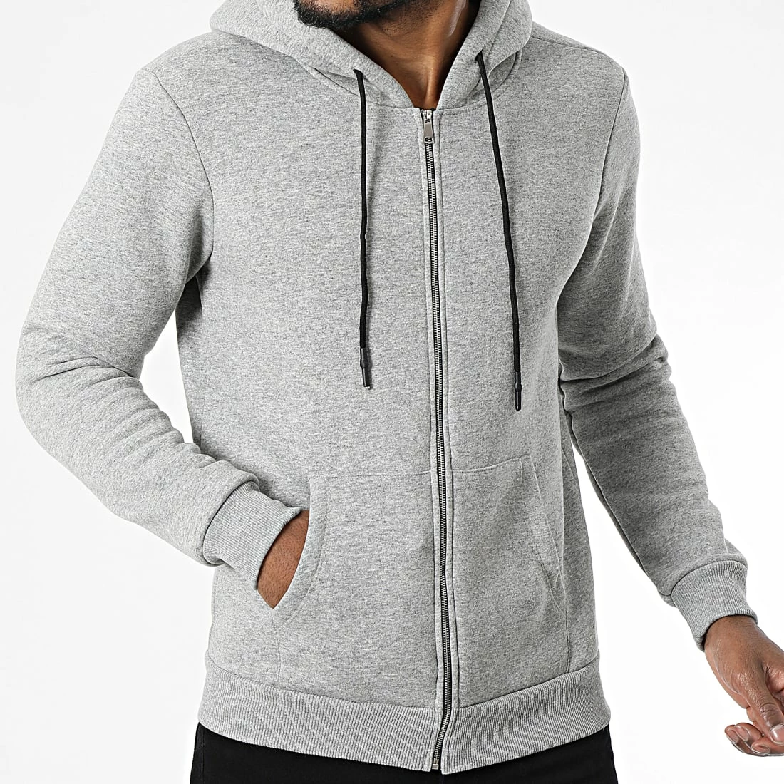 Meilleure affaire 🧨 Sweat Zippé Capuche D8056 Gris Chiné de KZR 🛒